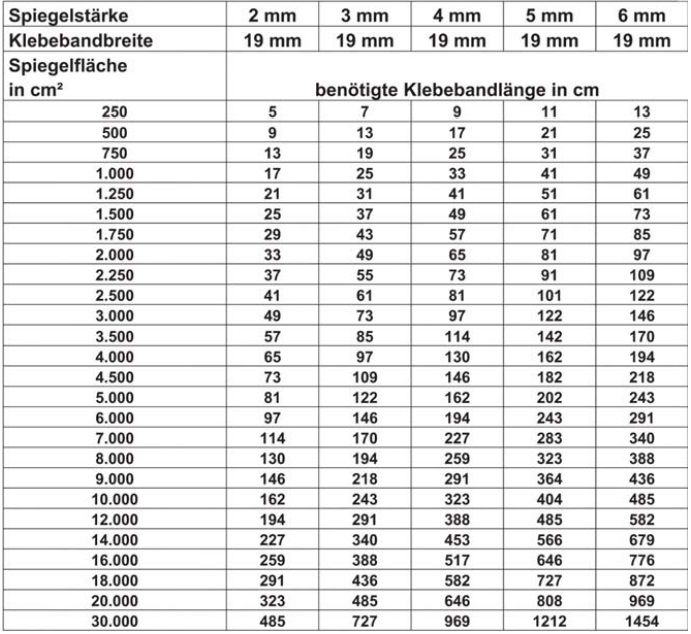 Nota speciale: per l'incollaggio è necessario rispettare le linee guida tecniche dell'Institut des Glaserhandwerks della Verlagsanstalt Handwerk GmbH, Düsseldorf. Glaserhandwerks della Verlagsanstalt Handwerk GmbH, Düsseldorf n. 11 Edizione 2006/11 . Per l'incollaggio sopraelevato e angolato, i nastri adesivi a specchio possono servire solo come ausilio al montaggio ed è assolutamente necessario un fissaggio meccanico.